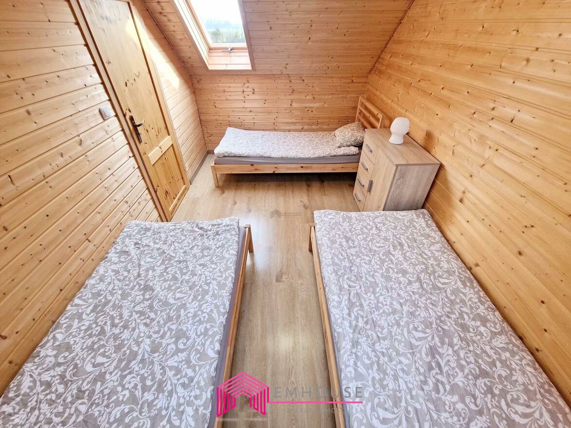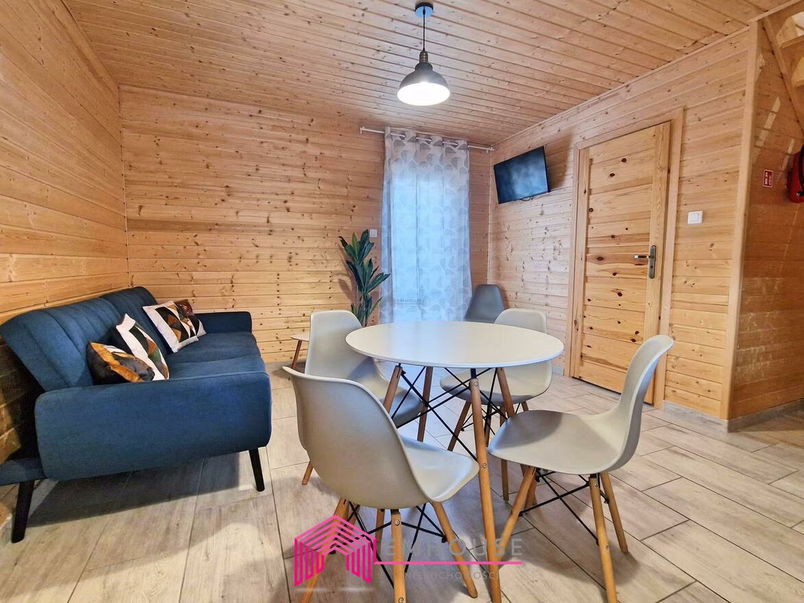 OFERTA NA WYŁĄCZNOŚĆMamy przyjemność przedstawić ofertę sprzedaży gotowego i funkcjonującego biznesu stanowiącego wolnostojący budynek o pow. 188,70 m2 (po podłodze) / 158,40 m2 (do wysokości 2,20 m), składającego się z pięciu apartamentów 3-pokojowych z tarasem w stylistyce domków letniskowych. Jeden z apartamentów dodatkowo wyposażony jest w jacuzzi. Budynek z 2022r, posadowiony jest na działce o pow. 1003 m2, zbudowany w technologii kanadyjskiej, kryty dachówką betonową, ocieplony wełną mineralną, okna PCV - dwu komorowe. Na działce dodatkowo znajduje się mini plac zabaw, miejsce na ognisko oraz wiata grillowa i garaż blaszak. Nieruchomość, ze względu na powierzchnie pozwala dodatkowo wybudować budynek wolnostojący. W cenie projekt takiego budynku, na który było wydane pozwolenie na budowę, wygasło w 2023r.